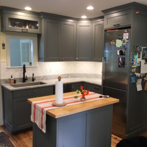 Natick-based Metropolitan designer Tracey Street redesigned a small kitchen to have a big a impact! Wanting to give the homeowners as much countertop surface as possible, Tracey added in a small movable island that doesn’t overwhelm the limited kitchen size.