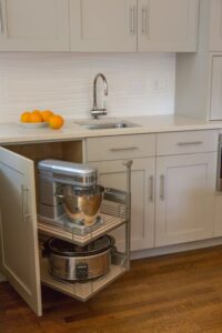 Include as many drawers, roll outs, and pantries as possible to prevent lifting and bending.